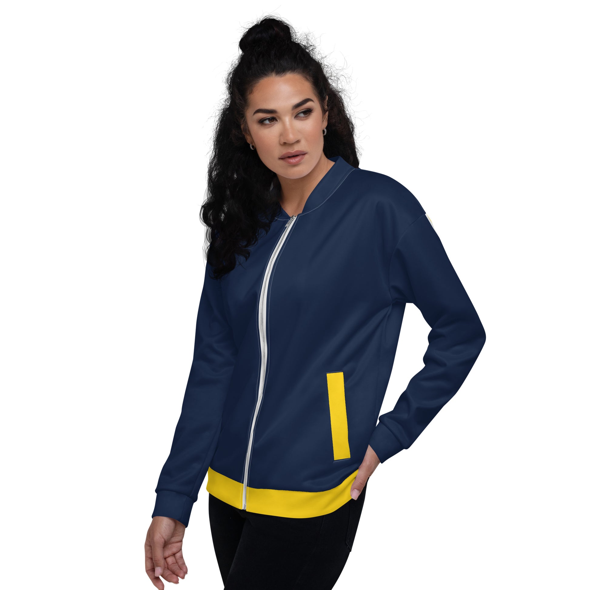 Diese Bomberjacke peppt einfach jedes Outfit auf. Egal, ob man sie zusammen mit einem normalen T-Shirt oder über einem warmen Kapuzenpullover trägt, sie sieht einfach immer gut aus. Mit Fleece-Innenseite und einer lockeren Unisex-Passform ist diese Unisex Jacke ein Must-Have in jedem Kleiderschrank!
